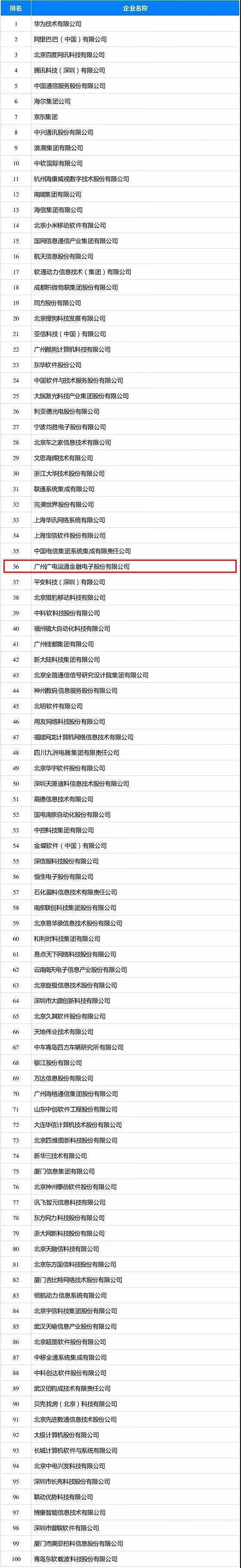 附中国软件和信息技术服务综合竞争力百强企业名单: