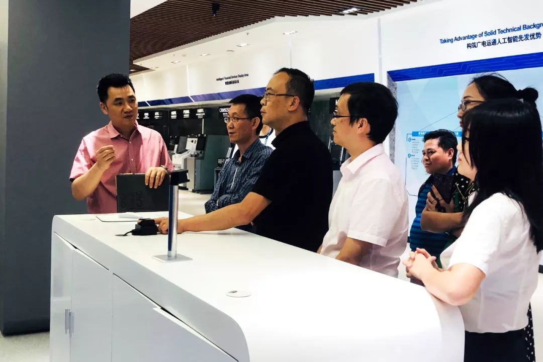 10月22日,贵州省投资促进局副局长余显强一行莅临广电运通参观考察。在广电运通董事会秘书钟勇的陪同下,贵州省投资促进局一行参观了广电运通人工智能创新中心,并围绕大数据电子信息产业的合作发展进行深入交流