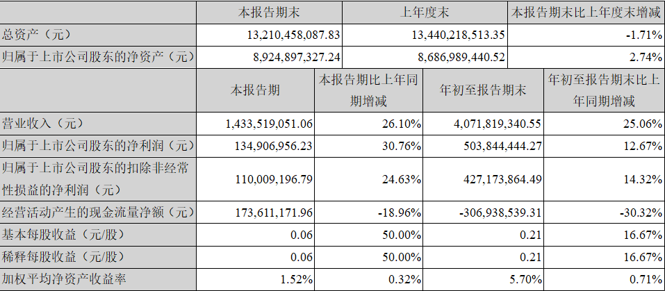 10月24日晚间,广电运通发布2019年第三季度报告。公告显示,2019年第三季度,公司实现营业收入14.34亿,同比增26.10%;实现归属于上市公司股东的净利润1.35亿元,同比增长30.76%;扣非净利润1.10亿元,同比增长24.63%。