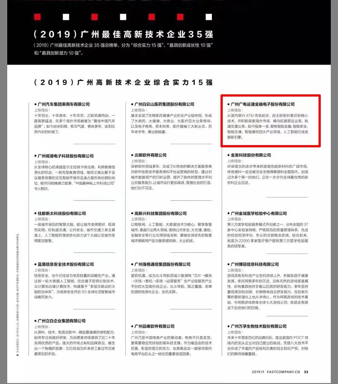 强,广电运通成功入选广州最佳高新技术企业综合实力15强。