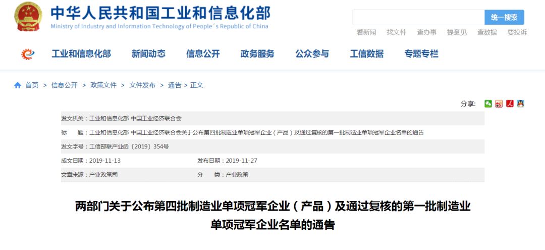 日前,工业和信息化部公布第四批及通过复核的第一批制造业单项冠军名单。广电运通作为第一批单项冠军示范企业通过审核。