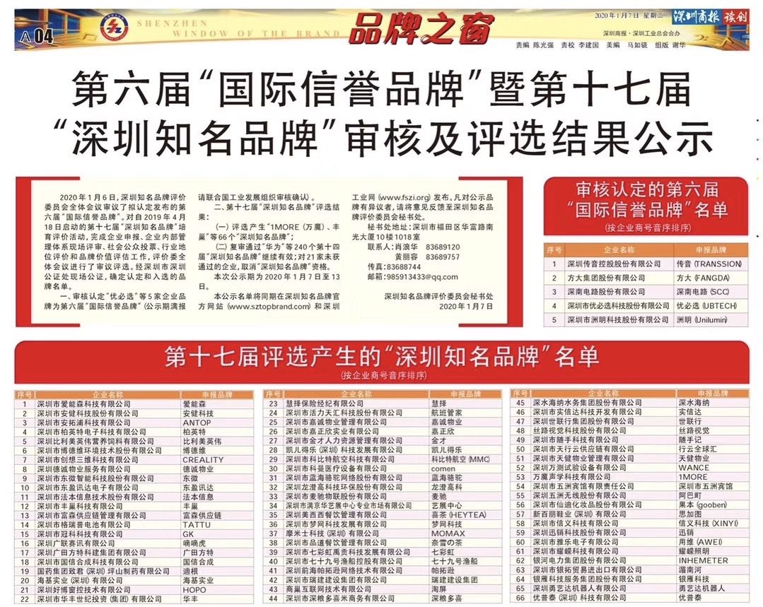近日,第十七届“深圳知名品牌”评审结果重磅揭晓,广电运通旗下信义科技成功入选。