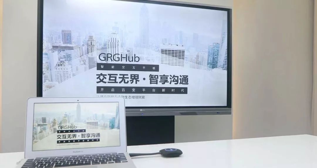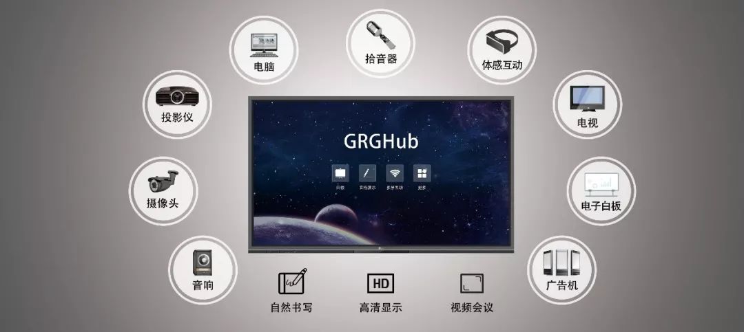 广电运通智能会议平板GRGHub,是新一代高效的交互协作平台和人工智能产品与解决方案,集电脑、投影仪、摄像头、电子白板、音响、电视、广告机于一体,具备远程会议、文档共享、白板书写、无线传屏、多屏互动、扫码分享等智能化功能,适用于远程办公,智能营销、远程教育、在线会诊等多场景,专为智能交互、高效协作而生: