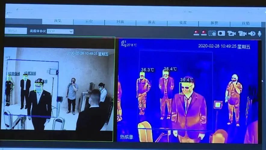 广电运通“人体测温闸机系统解决方案”采用广电运通全球领先的面部分析、智能闸机控制等技术,提供包括人脸检测、活体识别、人脸比对、体温监测、体温异常人员自动报警或拦截等多种功能。当人出现在“人脸识别+体温监测闸机”的入口监测范围内,大约1秒内显示初步结果,体温异常人员将会引发闸机警示提醒,大大提升通行效率。