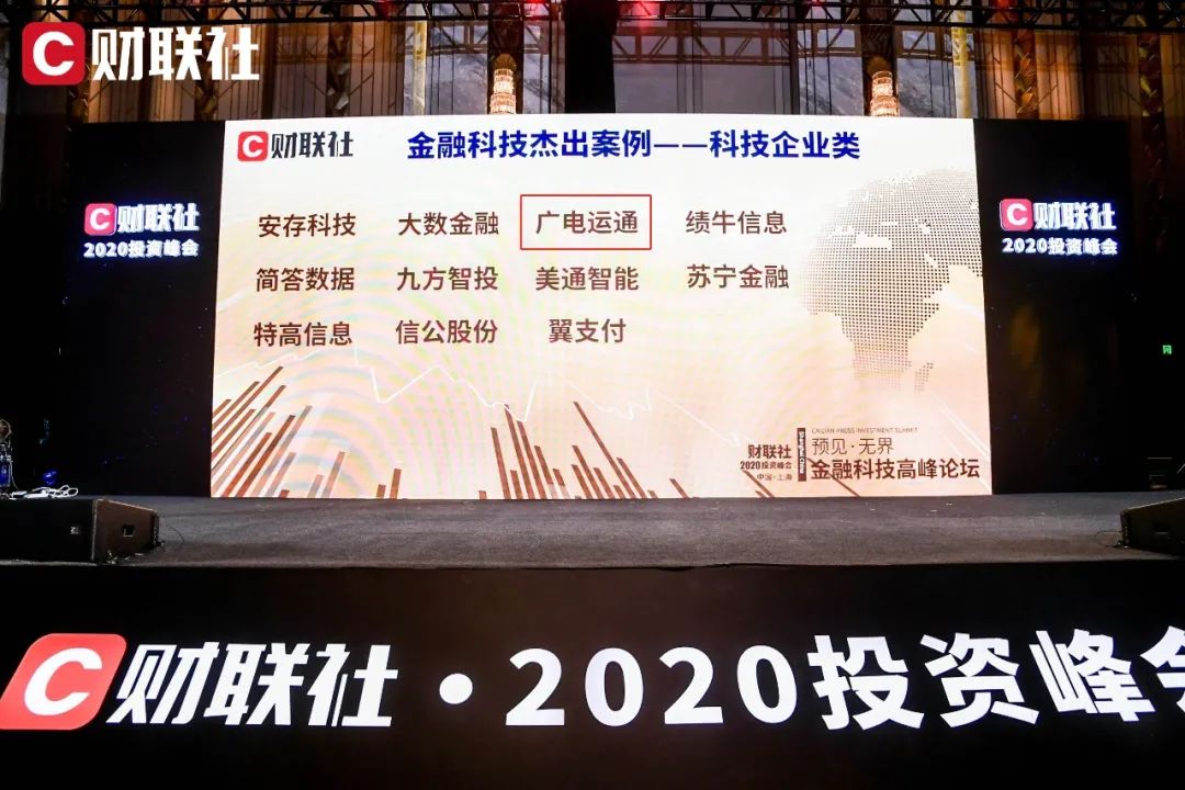 12月16日,2020财联社投资峰会·金融科技高峰论坛暨“金融科技杰出案例”颁奖典礼在上海举办,广电运通荣获“金融科技杰出案例——金融机构类”典型应用企业奖项。