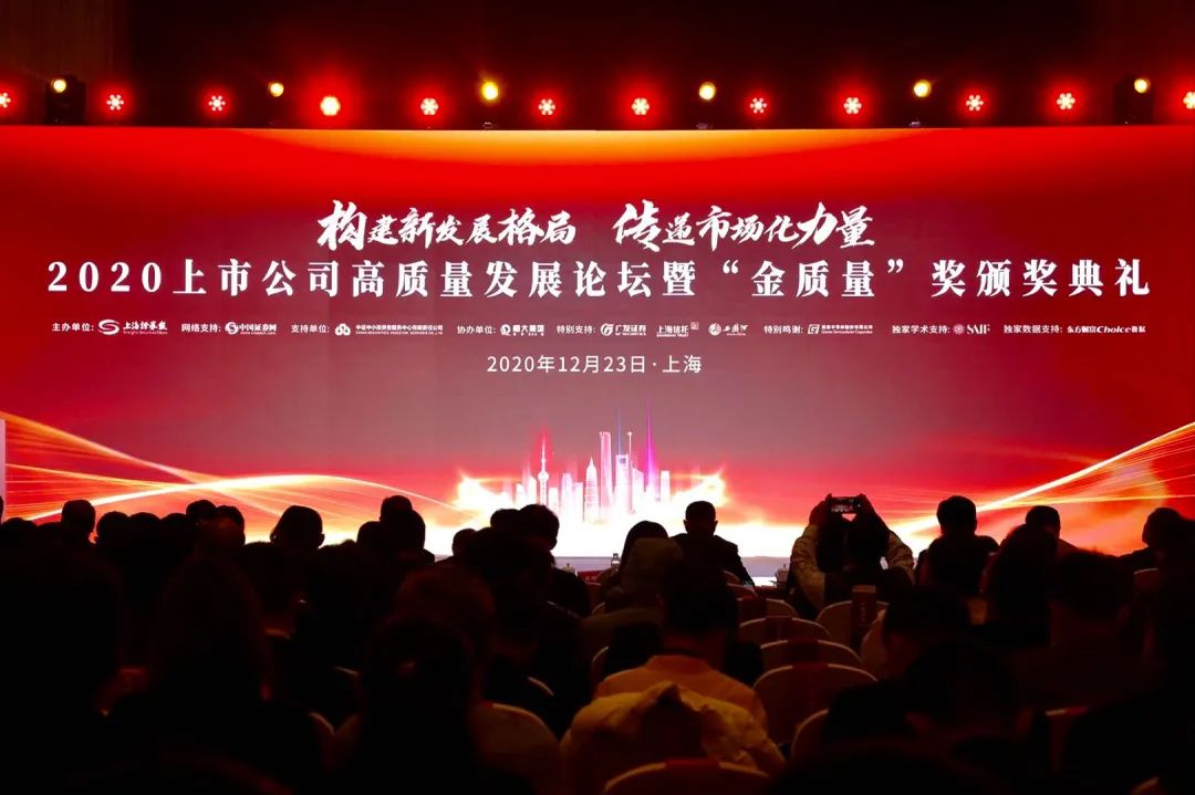月13日,由上海证券报主办的“2020上市公司高质量发展论坛”暨“金质量”奖颁奖典礼在上海举行。