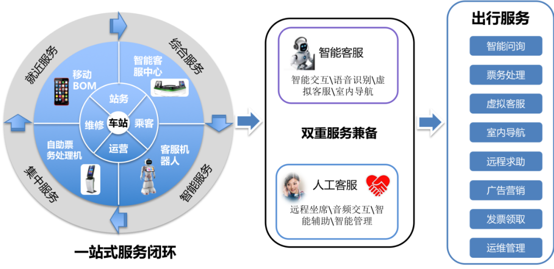 乘客可以在智能客服中心自助完成充值补票、语音问询、生物识别注册、电子发票领取等业务;新一代深圳地铁语音服务平台的搭建,为乘客提供地铁乘车、票价、服务、安全等资讯的自助问询,同时提供人工客服加以辅助。