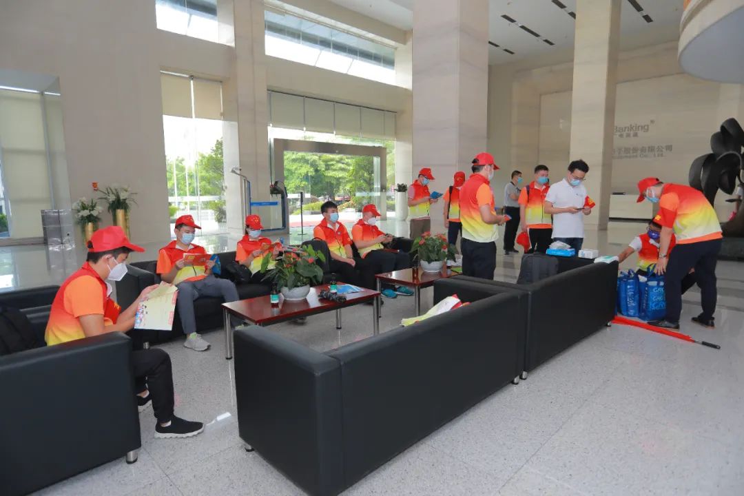 6月10日8时整,党员志愿者先锋队全员集结到达,公司为志愿者提供专业防护用品,并组织学习广州无线电集团《志愿者疫区服务手册》,整装待发。