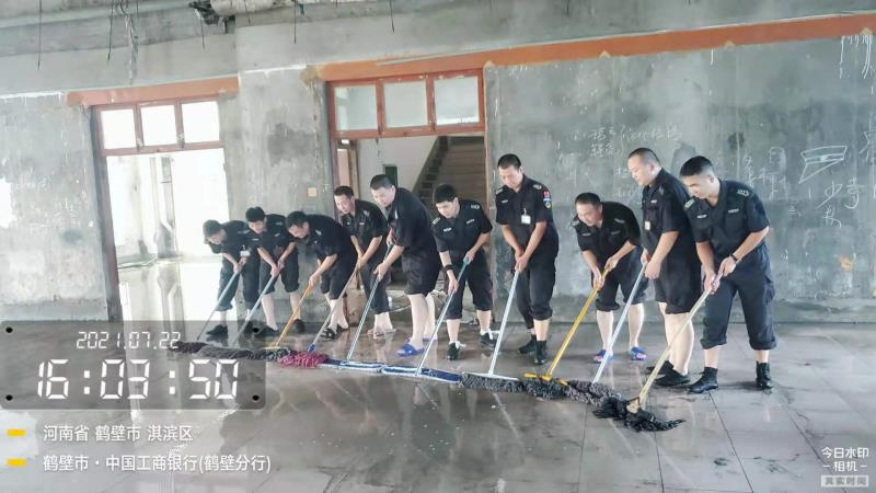 鹤壁鹏翔驻工行人防、押运支队组建志愿队伍,连续奋战9小时,协同工行开展紧急抢险工作,有效保障了行方重要机构与财产的安全;鹤源饭店驻场保安人员冒雨涉水排险,紧急疏通排水管道,全力确保客户重要物资财产不受损坏……而这些仅仅也只是鹤壁鹏翔在本次汛期抢险中的某一个剪影罢了。