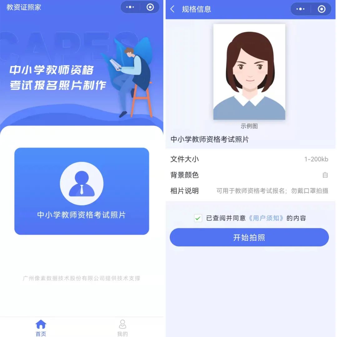 近期,为全力护航2021下半年中小学教师资格考试笔试报名,紧紧围绕便捷考生的服务效能,像素数据于8月在原有“证照家”平台基础上,为切实解决以往考生需外出至照相馆才能完成证照拍摄的问题,独立开设“教资证照家”微信小程序,全面开启全国教资报名者证件照采集检测的 “移动端通道”,确保报名者只需用手机、足不出户就能享受最简捷、最方便、最高效的证照采集、检测服务。