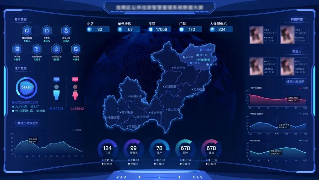 项目将开发全新的公共住房智慧管理系统平台,整合龙岗区管理平台的设备接入、数据汇聚、管理,融入单元管理、大门口管理、户门管理等多个系统模块,结合生物识别、视频监控、物联网、大数据分析等技术,对违规用房进行预警,精准入户排查、取证,实现转租、转借、非法使用、长期空置、拖欠租金等行为的有效监管,大幅提升公共住房管理者监管效能。