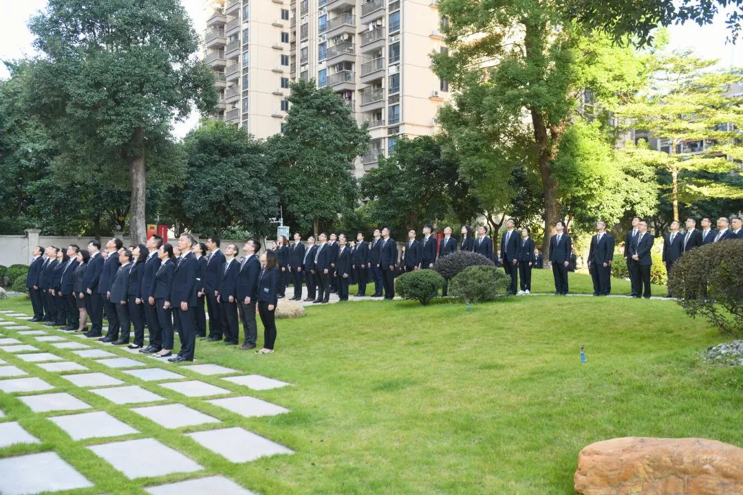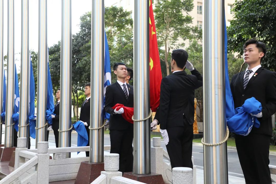 早上8:00,广电平云广场阳光明媚、绿树成荫,一派生机勃勃的景象。无线电集团领导班子,集团总部全体员工,二级企业领导班子,各企业年度省、市、集团及荣誉获得者,广电运通、海格通信、广电计量、广电城市服务等二级企业优秀应届新员工代表、司龄超25年员工代表等200余人列队肃立,代表奋战在全球110多个国家和地区的近5万多名员工,在这块见证过几代广电人努力拼搏、跌宕起伏的无线电集团总部基地,举行庄严的升旗仪式。这既是表达对祖国崇高的敬意和热爱,也是表达企业将秉承集团65年的历史底蕴,迈向百年芳华的信心与决心!