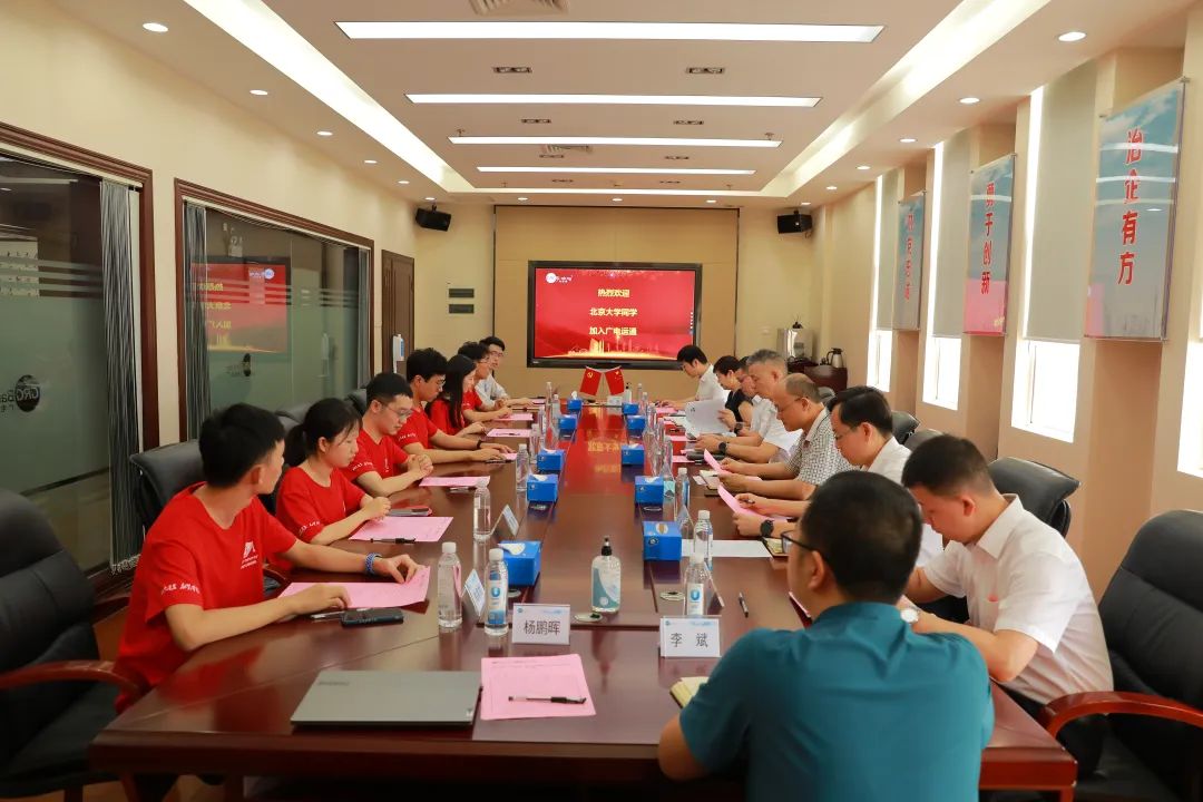 7月5日,广电运通召开北京大学“力行计划”优秀硕博研究生实践座谈交流会,广电运通党委书记、总经理陈建良,常务副总经理、智能金融研究院院长李叶东,党委委员、副总经理、研究院总院常务副院长魏东,总法律顾问、党委组织部部长、人力资源总监陈淑娴,及公司研发部门相关负责人、北京大学“力行计划”广电运通实践团成员出席本次座谈交流会。