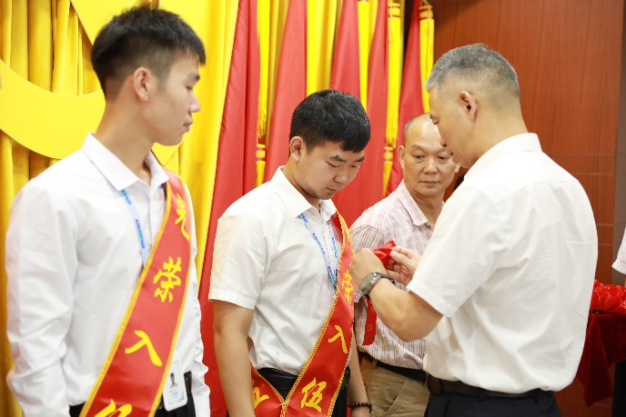 会上,陈建良为张柠波、黄子鹏佩戴光荣花和绶带、为新兵家属佩戴光荣花以表祝贺,同时向张柠波、黄子鹏赠书以作激励。陈建良表示,广电运通非常支持和鼓励优秀员工到部队中去历练,为部队和国防事业做贡献,公司将为入伍员工做好各项后勤保障工作,保留员工入伍前的待遇与岗位,在员工退伍回来后重点培养、优先提拔,将各类员工关怀物品送至入伍员工的亲属手中,让员工踏踏实实去入伍,真正体现广电运通的国企担当与红色血脉。