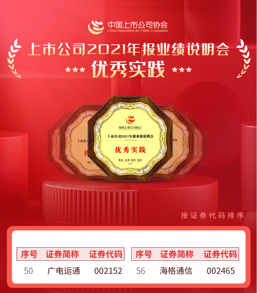2022年最后一个交易日,中国上市公司协会发布了“上市公司2021年报业绩说明会优秀实践”榜单,广电运通(002152)入选。