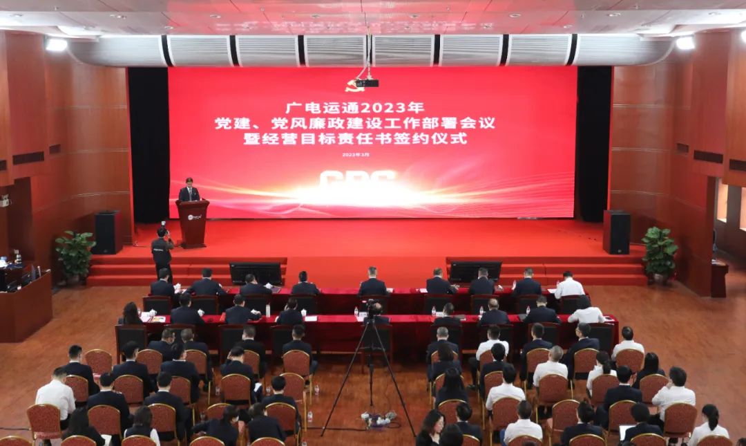 3月20日下午,广电运通召开2023年党建、党风廉政建设工作部署会议暨经营目标责任书签约仪式。广州无线电集团党委办公室主任胡中意出席会议,广电运通党委书记、董事长陈建良,总经理李叶东以及中高层干部,在穗党支部书记、下属单位总经理,“党建+”攻关项目汇报人到场参会,异地党支部及党员通过悦识平台直播观看。会议由公司纪委副书记、党委办公室主任周文明主持。