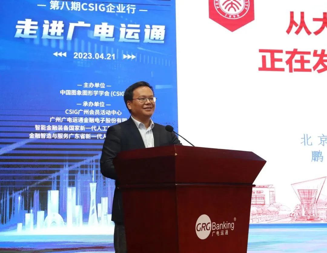 4月21日,第八期CSIG企业行“走进广电运通”活动成功举办。该活动由中国图象图形学学会(CSIG)主办,CSIG广州会员活动中心、广电运通、智能金融装备国家新一代人工智能开放创新平台、金融智造与服务广东省新一代人工智能开放创新平台共同承办,以“预训练大模型与AI对抗学习”为主题,邀请来自北京大学、中山大学、华南理工大学、暨南大学、华南农业大学、广东工业大学、广州大学、上海大学、广东开放大学等院校的十余位教授、研究员,及广电运通近百名员工线下共同参与,同时吸引了1000余人次在线观看。