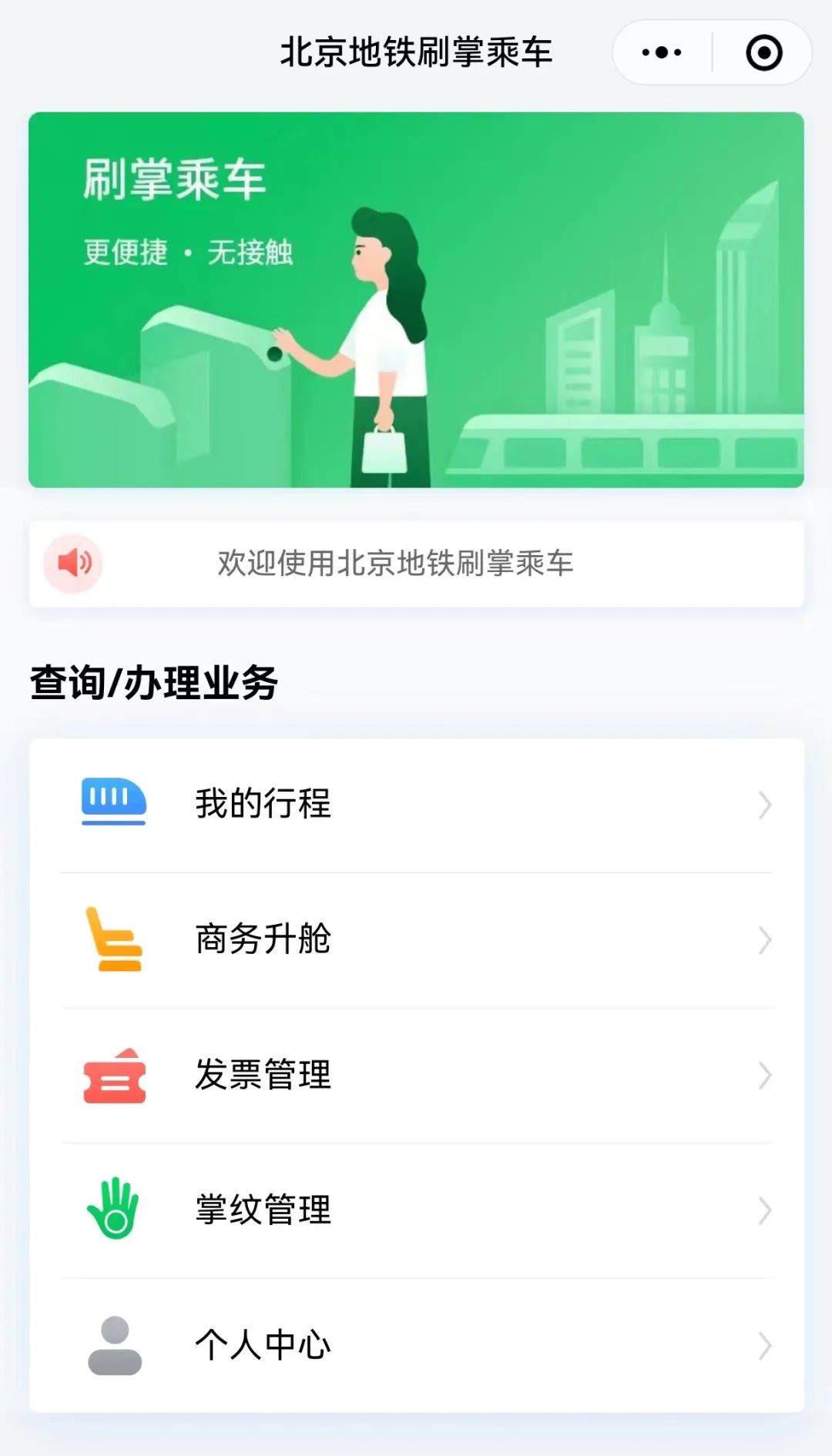 北京轨道交通刷掌乘车小程序