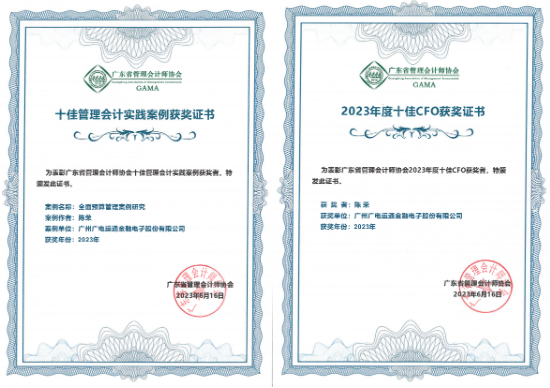 为了推动数智化时代管理会计理论研究与实施落地,引领企业高质量发展,广东省管理会计师协会设置了若干奖项的评比。广电运通凭借《全面预算管理案例研究》获评 “十佳管理会计实践案例”奖项,副总经理陈荣获“2023年度十佳CFO”称号。近年来,广电运通财务团队致力推动全面预算管理和财务转型,深入探索和实践全面预算管理的理念,通过搭建财务智能大数据中心和全面预算平台,引入先进系统并构建敏捷的财务智能数据分析平台,进一步加强了企业管理能力和促进了业务发展,帮助企业应对日益复杂和竞争激烈的商业环境。