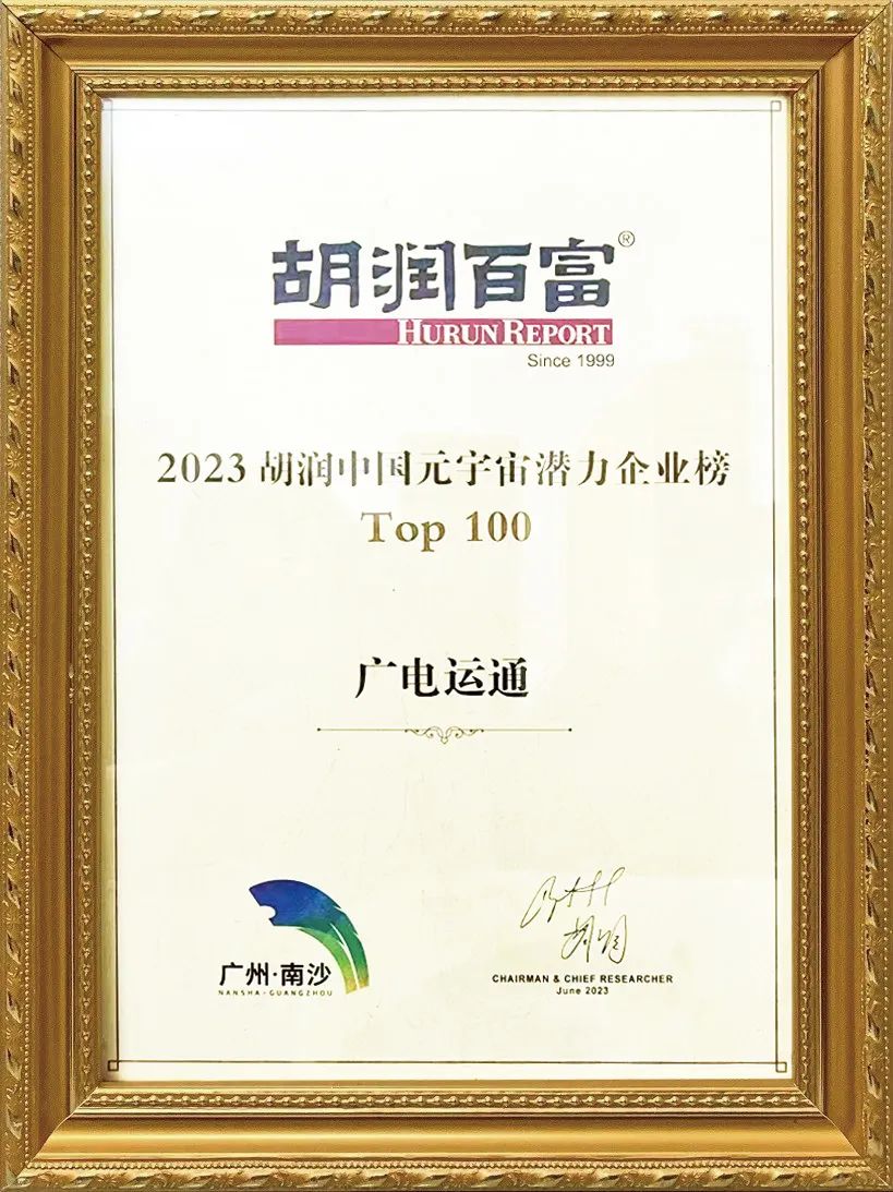 广电运通入选2023胡润中国元宇宙潜力企业榜TOP100