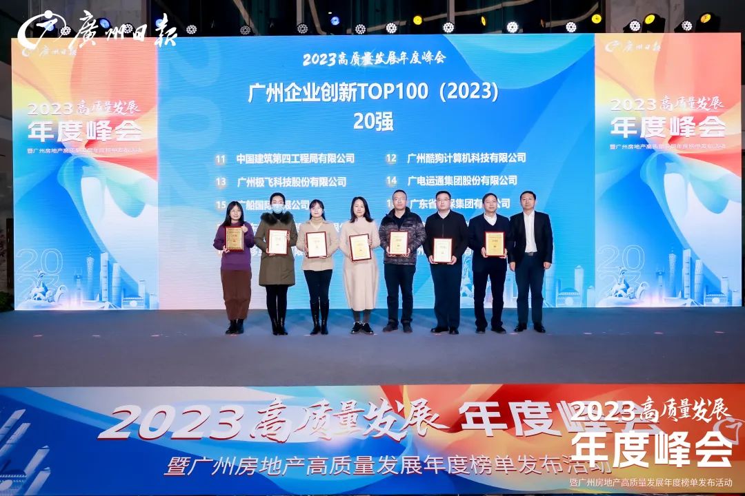 广电运通入选2023年度广州企业创新TOP100榜20强