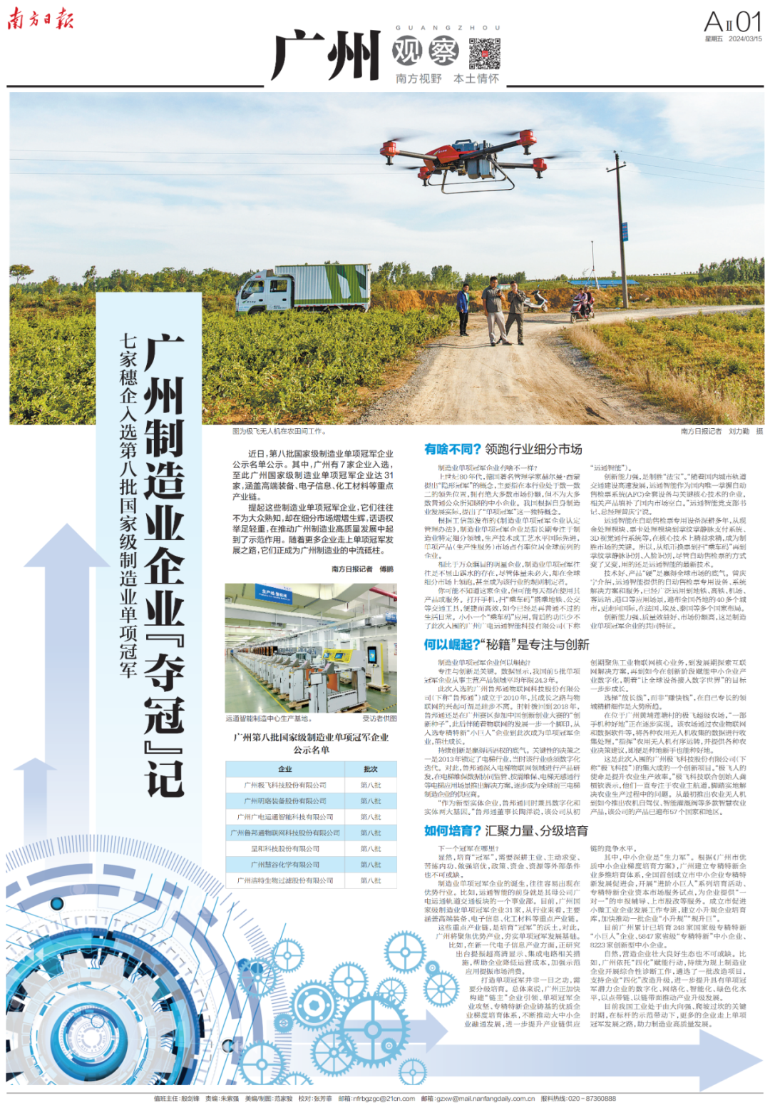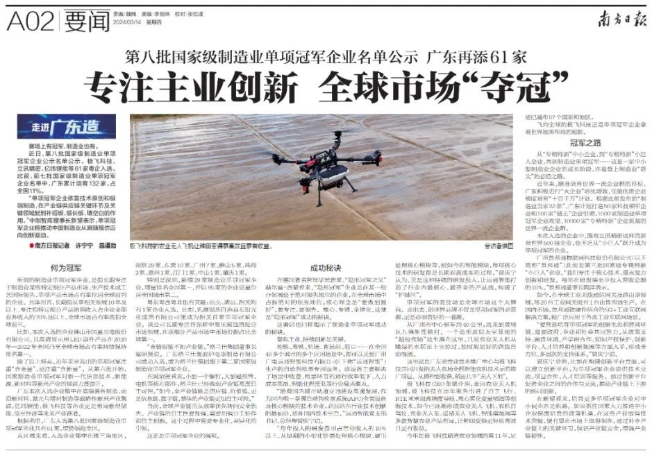 近日,国家工信部、中国工业经济联合会发布了“第八批全国制造业单项冠军企业”名单,广电运通成员企业运通智能凭借卓越的技术实力和市场表现,成功入选。南方日报、南方+连续两日深度聚焦报道。