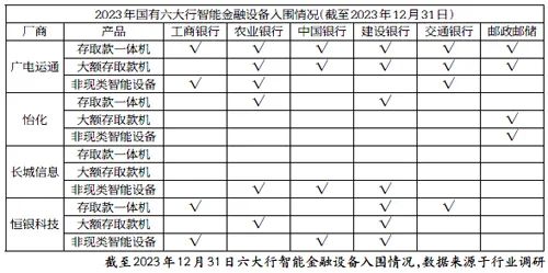 六大行智能金融设备入围情况