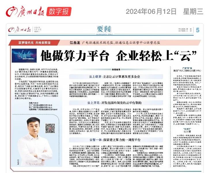 近日,广州日报“发现广州新质生产力”一线调研团队走进广州人工智能公共算力中心以及广电运通,实地调研广州算力产业的现状与困难,为企业、人大代表、专家搭建对话平台,共同探索广州算力产业的发展路径。本次调研中,广州日报采访了广电运通总经理助理王飞、技术副总监江杰龙。
