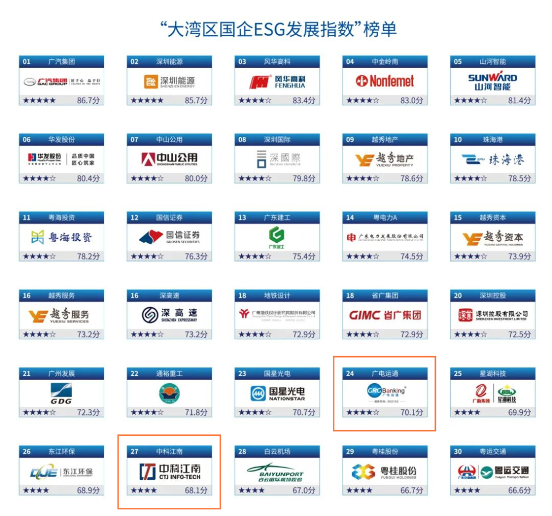 “大湾区国企ESG发展指数”榜单入选企业展示。