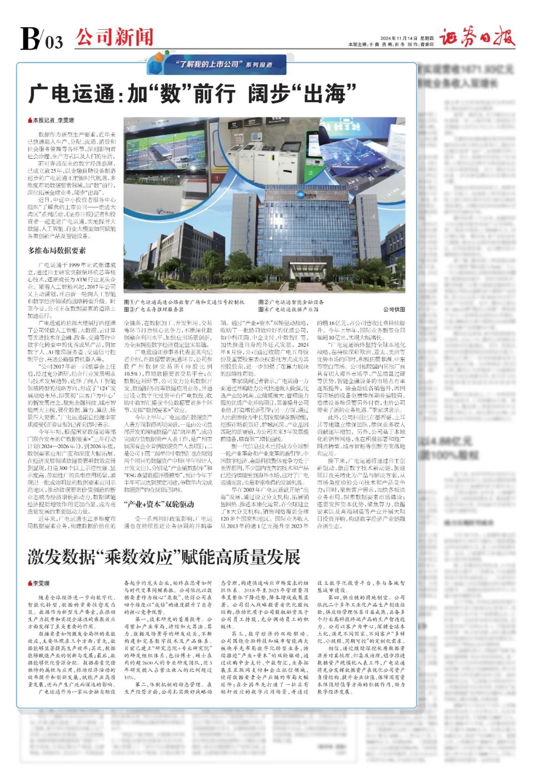 面对奔涌而来的数字经济浪潮,以金融自助设备制造起步的广电运通正把握时代机遇,多维度布局数据要素领域,加“数”前行,深化拓展全球业务,阔步“出海”。