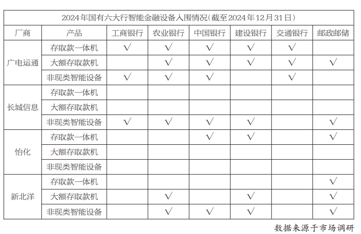 值得注意的是,在六大行和12家股份制银行2024年的智能金融设备新增采购中,信创金融设备的采购比例已经接近100%。从存量设备来看,信创现金设备整体占比不到50%,非现金设备占比更低。未来随着部分旧设备逐渐达到规定使用年限,市场在政策和旧机替换的叠加刺激下,将持续打开增量空间。与此同时,一些敏锐的厂商已经捕捉到银行业新一轮网点运营改革所带来的机遇,提前积极参与到新一代智能金融设备的研发与试点。凭借其前瞻性的布局,头部厂商在新一轮的市场竞争中将占据领先优势,进而构建更高的行业壁垒,持续强化其市场领导地位。