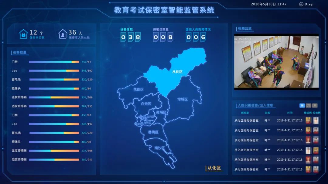 在AI防控、人防、物防一体化的智能保密室里,试卷是重点保护对象。借助人脸识别、视频分析等关键技术支持,室内一旦出现异常情况,系统会立即发出警报,有效降低了试卷泄露风险。