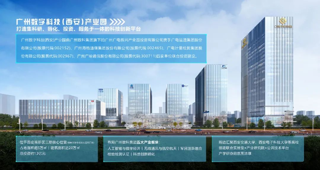 本届展会上,由广州数科集团旗下广电产业园牵头,联合广电运通、海格通信、广电计量、广哈通信四家A股上市公司共同投资建设的广州数字科技(西安)产业园项目首次正式亮相。