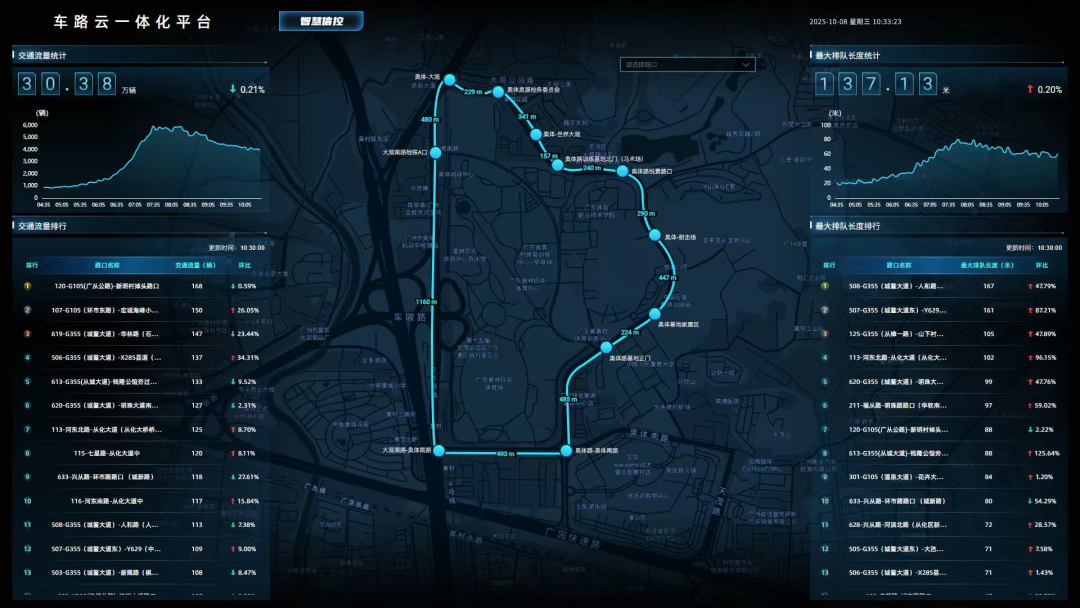 支撑这一变化的,是广电运通成员企业运通智能在从化部署的智慧绿波项目。通过雷视一体机、边缘计算单元等自研设备,实现了车流量的实时感知与信号灯的智能调控。