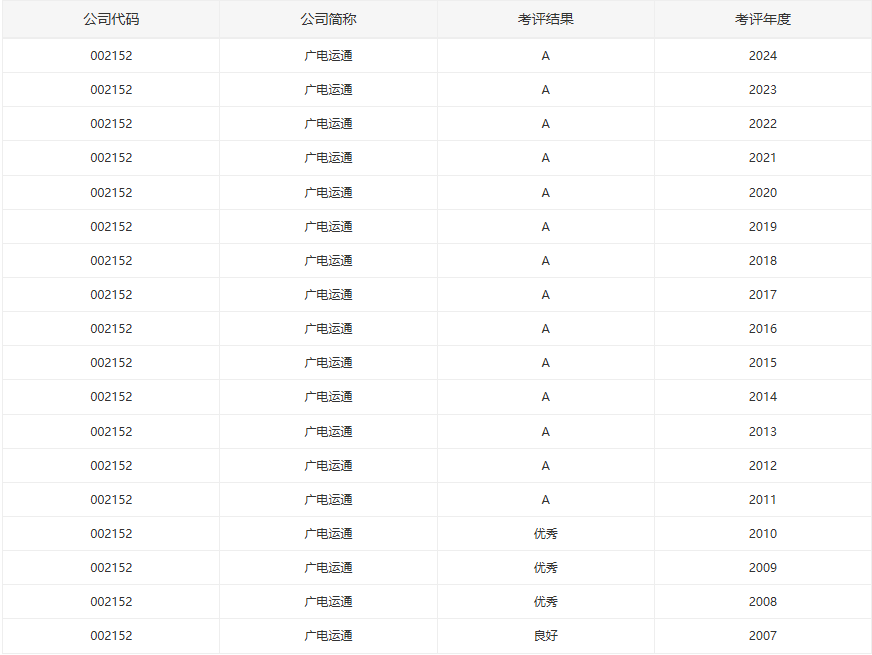 近日,深圳证券交易所(以下简称“深交所”)公布了深市上市公司2024-2025年度信息披露工作评价结果,广电运通(002152.SZ)凭借规范、透明、精准、高效的信息披露工作,再次获得最高A级考评,这是广电运通连续第17年荣获信息披露最高评级,充分彰显公司在资本市场信息披露领域的标杆实力与合规担当。