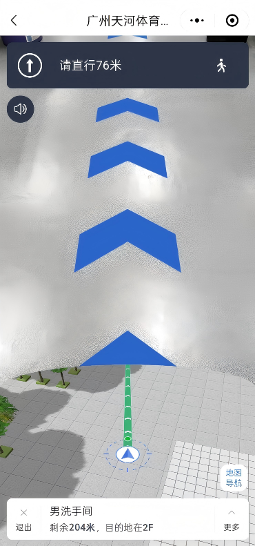 “科技让全运更温暖”不仅是一句口号,更是AR导航统建系统的真实写照。广电运通成员企业广电信义、运通智能建设的AR导航统建系统,依托高精度轻量化地图,融合视觉识别、蓝牙与北斗技术,重构广东省奥林匹克体育中心、天河体育中心等场馆导览体系,使实景与导航路线无缝衔接,精准指引座位。尤其是长者和小童,通过AR视觉的虚拟箭头即可快速寻找座位与设施。系统还融入无障碍设计,为行动不便者规避楼梯,打造便捷包容的观赛体验。