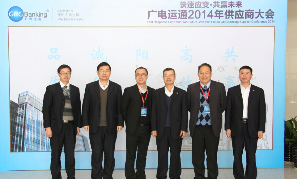 这是2014年广电运通供应商大会的现场。据了解,本次供应商大会的主题是“快速应变·共赢未来”,通过本次大会,广电运通向不同产品、不同生产线的供应商企业总结了过去一年的产品供应质量情况,也介绍了接下来一年的产品需求情况,同时宣布了一系列对供应商的考核要求,目的是建立一种“科学规范、阳光互信”的供应商管理体系与合作关系。